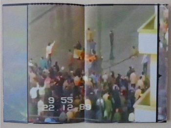 ALS DIE ZEIT IN RUMÄNIEN AM 22.12.1989 FÜR MEHRERE MOMENTE STILL ZU STEHEN SCHIEN, WAR DEN BEWEGTEN MENSCHEN AUF DEN STRASSEN NOCH NICHT BEWUSST, DASS DIE ERHOFFTE VERÄNDERUNG SCHON LÄNGST BESCHLOSSEN WAR UND DIE REVOLUTION ZUR DEKORATION DES NEUEN HERRSCHAFTSZUSAMMENHANGS ERKLÄRT WURDE. MENSCHEN GINGEN NACH DRAUSSEN, UM IHREM CONDUCĂTOR EINEN NAGEL IN DIE WAND ZU SCHLAGEN. DURCH DAS LOCH IN DER TAPETE, DAS IHNEN ZUKUNFT VERSPRACH, SAHEN SIE EINEN PALAST, DER IHREN NAMEN TRÄGT, ZUM SCHEIN. WER HÄTTE IN DIESEM AUGENBLICK GEDACHT, DASS ES GERADE DIESER NAGEL SEIN WÜRDE, AUF DEM DIE REVOLUTION ALS DEKORATIVES ABBILD DES HERRSCHAFTLICHEN KONTINUUMS ENDEN WIRD. SO KOMMT DER STILLSTAND IN DIE HÄUSER UND MIT IHM EIN BILD VON GESTERN.